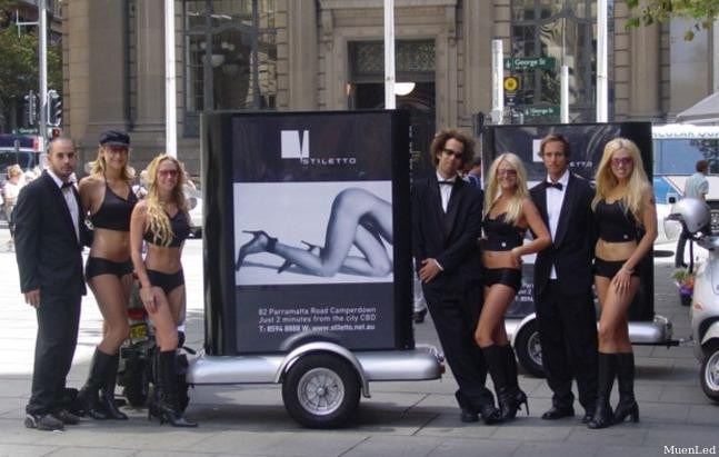 1. Une œuvre représentative des véhicules publicitaires mobiles de la mini-série adopte un châssis à 3 roues configuré avec des boîtes lumineuses à 3 faces